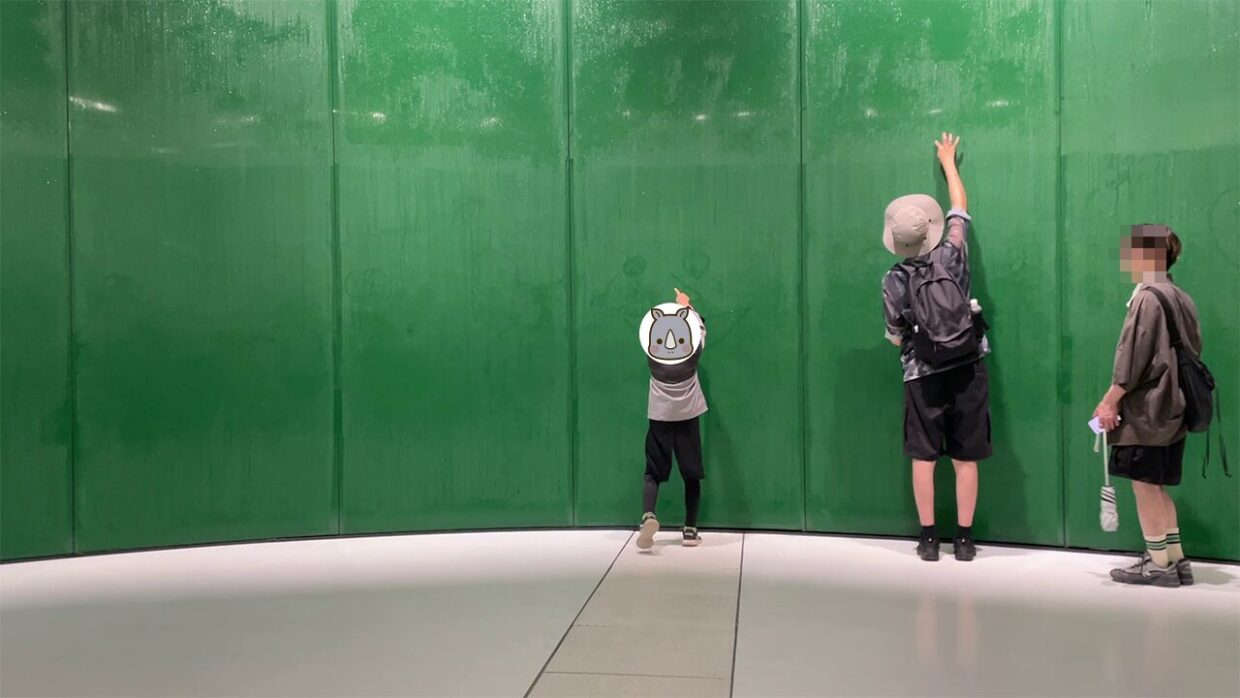 中へ進むと、奥にはガラスの壁でできた部屋が。 壁には結露がついていて、まるで大きなキャンパスのよう! みんな指で絵や文字を描いていて、とても楽しそうでした。