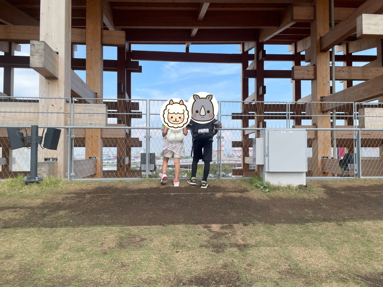 大屋根リングにあがると、サイ君とアルパカちゃんのテンションは急上昇!