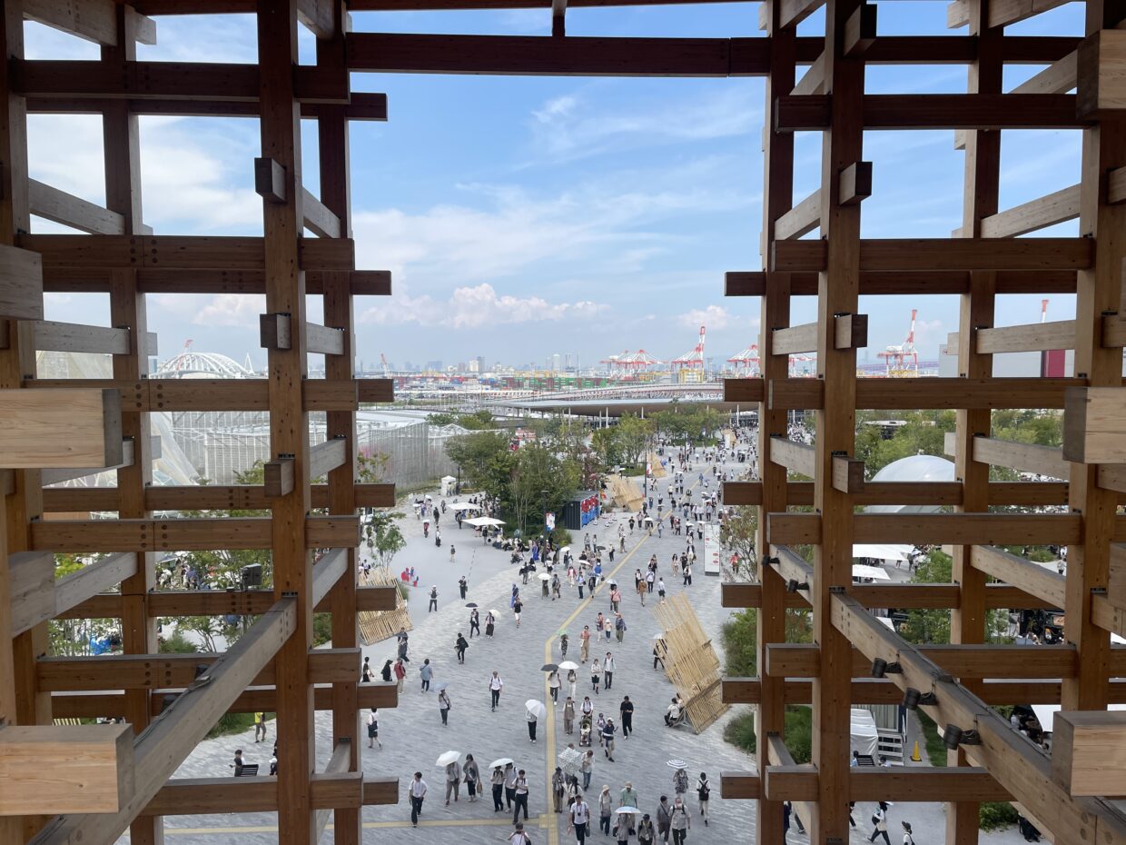 まずは会場全体を見渡せる大屋根リングにあがってみることに。