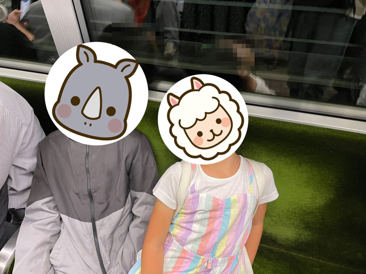 帰りの大阪メトロ中央線では、さい君もアルパカちゃんもぐっすり夢の中。